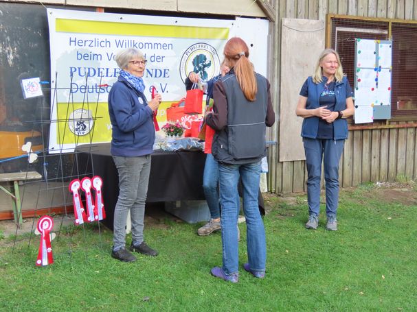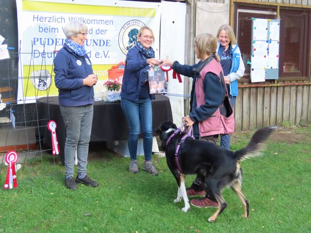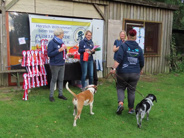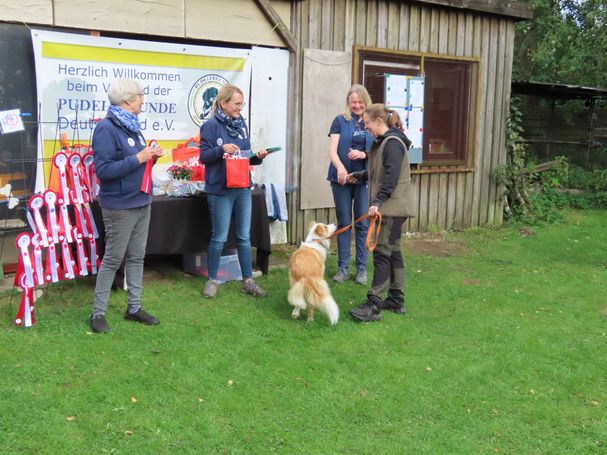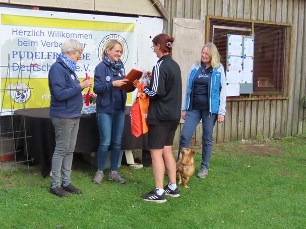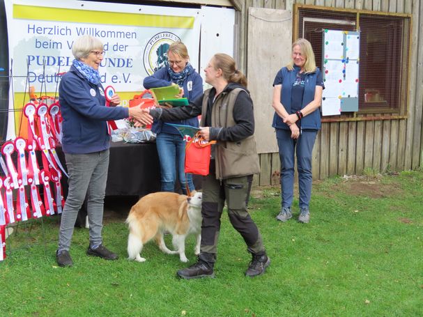 Als Richterin haben wir Renate Schmiegelt eingeladen, wir waren 8 Teams die gestartet sind ein Mitglied von uns hat nur den Sachkundenachweis abgelegt und zusätzlich zwei weitere die anschließend dann in die BH starten sollten.